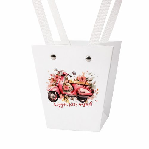 10db. "Legyen szép napod!" feliratos virág táska 12(h) x 12(sz) x 12.5(m) cm