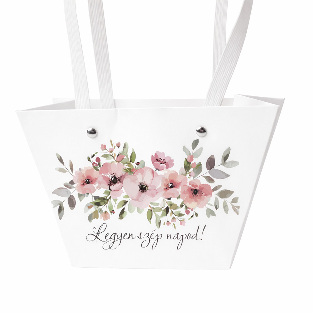 10db."Legyen szép napod!" feliratos virág táska 20(h) x 12(sz) x 12(m) cm