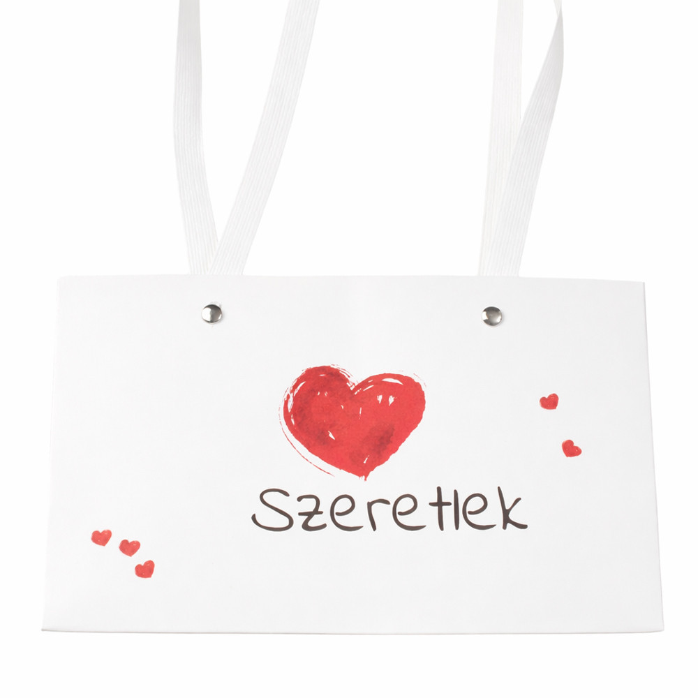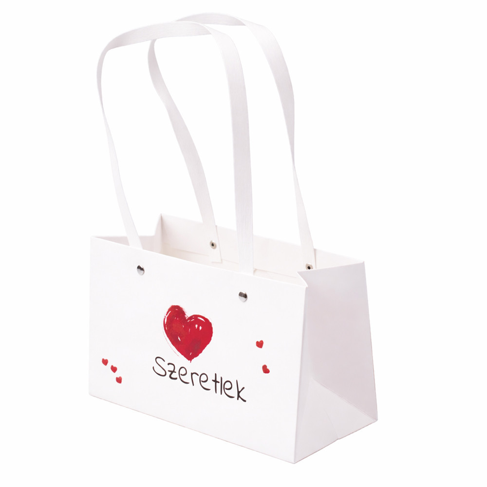10db. "Szeretlek" feliratos virág táska 22(h) x 10.5(sz) x 13.5(m) cm