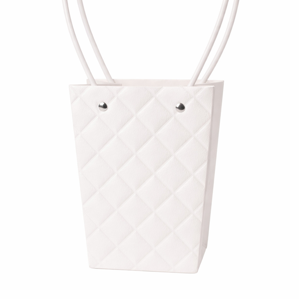 10db. dombornyomott virág-ajándék táska 13(h) x 9.5(sz) x 15.5(m) cm - Fehér