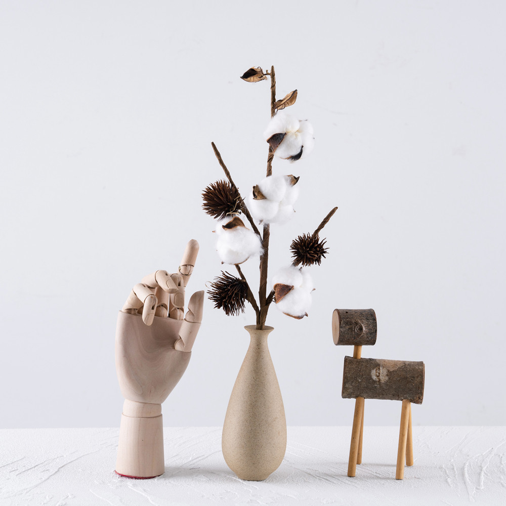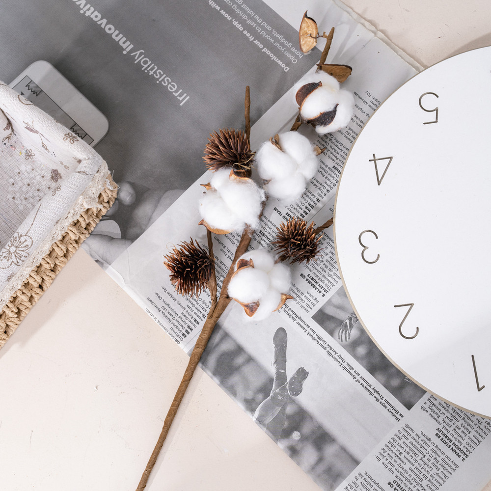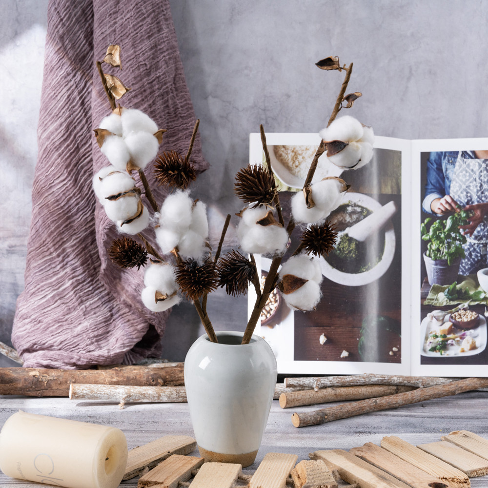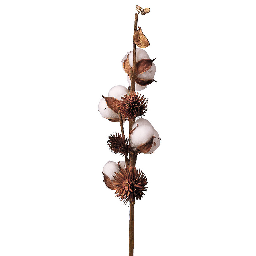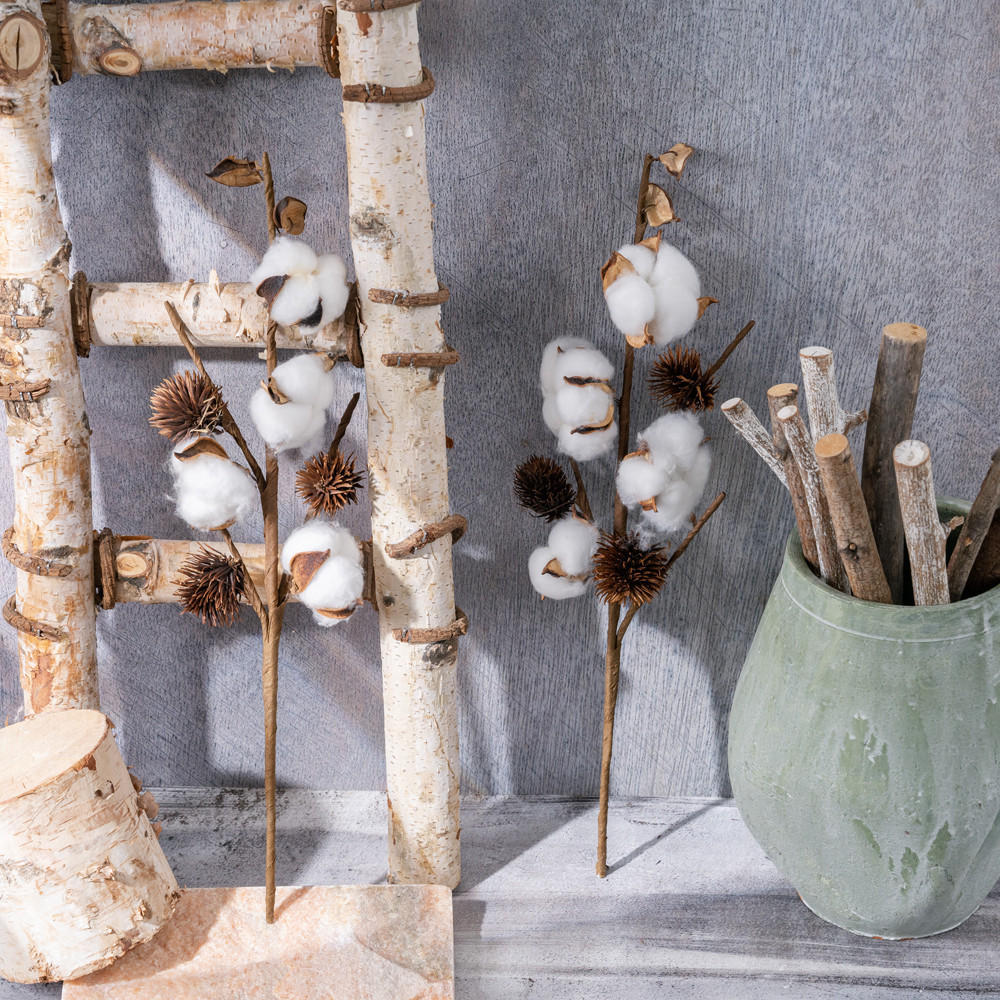 Gyapot dekor ág, 4 fejes, 49cm magas