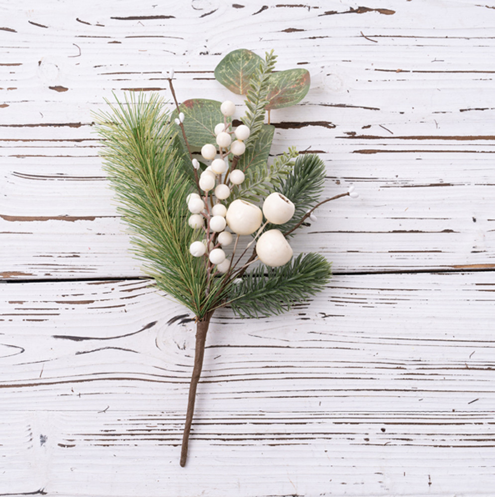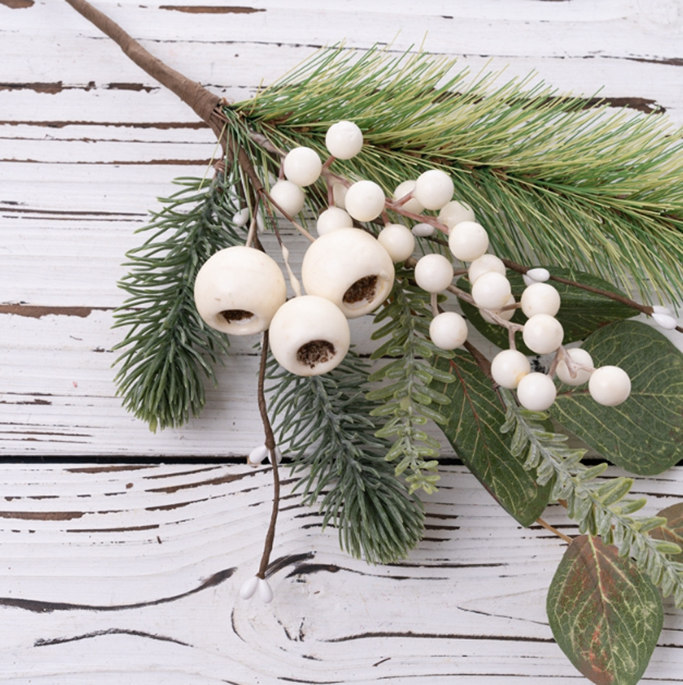 Téli ág fenyővel, levelekkel és bogyókkal, 37cm magas