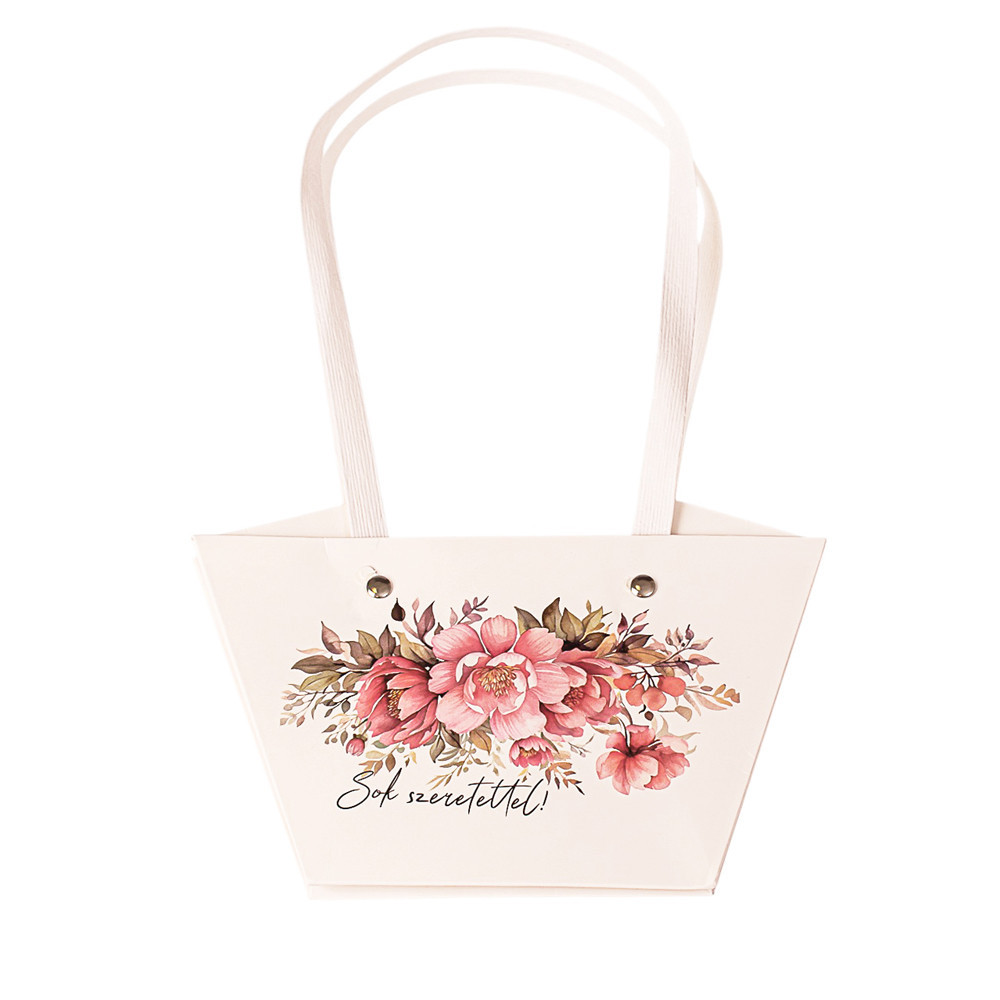 10db. "Sok szeretettel" feliratos virág táska 20(h) x 12(sz) x 12(m) cm