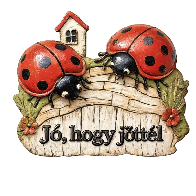 Nyomtatott dekorkarton „Jó, hogy jöttél” felirattal, kedves katicás mintával, amely azonnal barátságos, hívogató hangulatot teremt. A vidám, virágos stílus különösen jól illik virágboltok dekorációjához, kirakatba vagy virágkompozíciókba helyezve, de otthoni környezetben is remek választás bejárathoz vagy ajándék mellé.Saját gyártású termék, így egyedi megjelenést és minőséget képvisel, miközben kedves üzenettel fogadja az érkezőket. Méret: 20cm