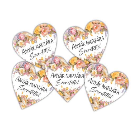 Ez a nyomtatott fa tábla anyák napjára készült, finom virágos mintájával letisztult és kedves megjelenést biztosít. A 4 cm-es méret ideális ajándékcsomagok, virágok vagy kisebb dekorációk kiegészítésére. Az 5 darabos kiszerelés lehetővé teszi, hogy több ajándékot egységes stílusban díszíts. A fa alap természetes hatást ad a terméknek, míg a virágos grafika visszafogottan emeli ki az anyák napja üzenetét. Méret: 4x4cm, vastagság: 3mm