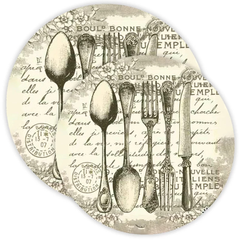 Nyomtatott fa tábla koszorú közép - Vintage evőeszköz 14.8 cm
