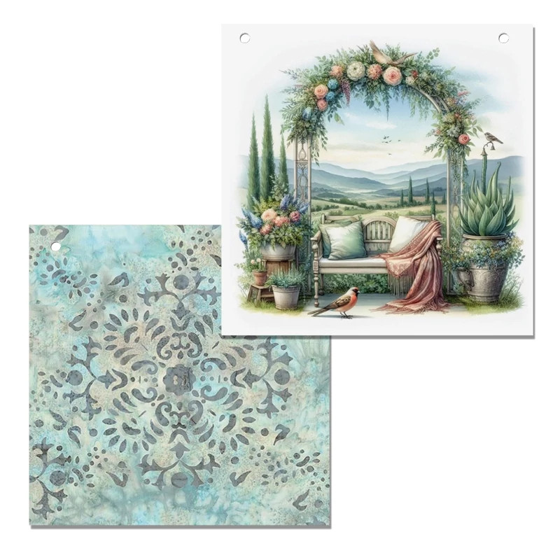 Nyomtatott fa tábla - Mediterrán csempe minta - Toscana türkiz 2db/csomag