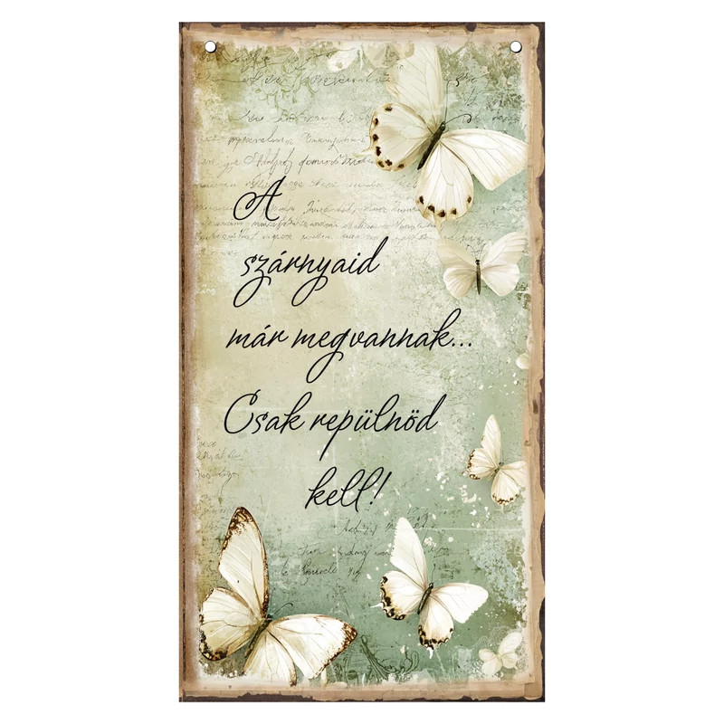 Nyomtatott fa tábla - Tavaszi zöld téma 13x24,3cm