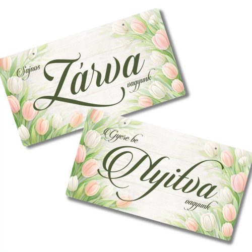 Nyomtatott fa tábla - Zárva-Nyitva 24,3x13cm - pasztell tulipános