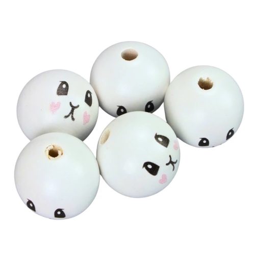 Nyomtatott fehér fagolyó nyuszi lány arccal 30mm 5db/csomag