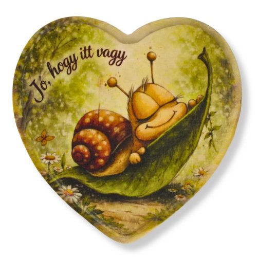 A Nyomtatott natúr szív peremes,Csigás saját gyártású dekorációs tábla kedves és természetközeli megjelenésével tökéletes kiegészítője ajándékoknak és dekorációknak. A szív formájú, peremes kialakítás és a csigás minta a „Jó, hogy itt vagy” felirattal meghitt, barátságos hangulatot teremt.Ideális választás ajándékcsomagoláshoz, meglepetések mellé vagy kreatív dekorációkhoz, de virágokba szúrva, ajtódíszeken és koszorúkban is szépen mutat. Saját gyártású termék, így egyedi és különleges megjelenést biztosít minden alkalomra. Méret: 15 cm