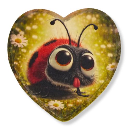A Nyomtatott natúr szív peremes - Katicás saját gyártású dekorációs tábla vidám és természetközeli megjelenésével tökéletes kiegészítője ajándékoknak és dekorációknak. A szív formájú kialakítás és a kedves, nagy szemű katicás minta játékos, barátságos hangulatot teremt. Ideális választás ajándékcsomagoláshoz, kreatív dekorációkhoz, de virágokba szúrva, ajtódíszeken és koszorúkban is szépen mutat. Saját gyártású termék, így egyedi és különleges megjelenést biztosít minden alkalomra. Méret: 15 cm