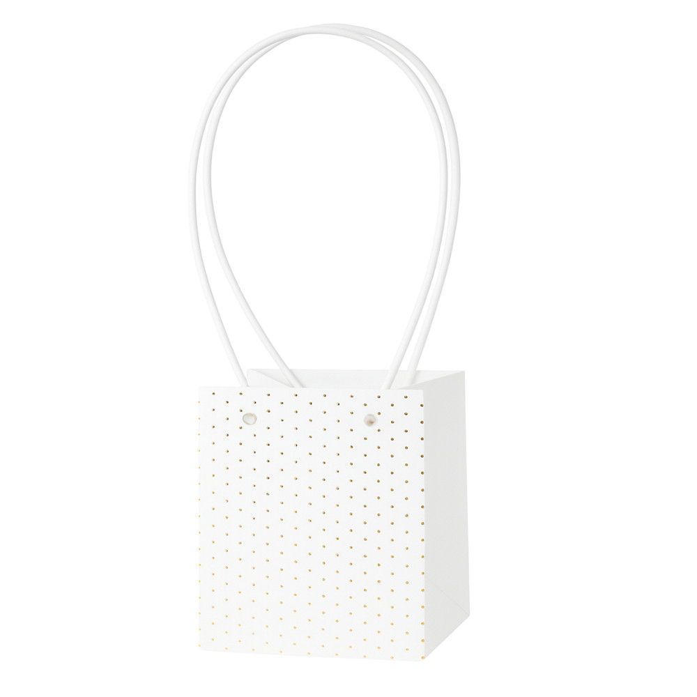 10db. dombornyomott virág-ajándék táska 11.5(h) x 11.5(sz) x 13(m) cm - Fehér